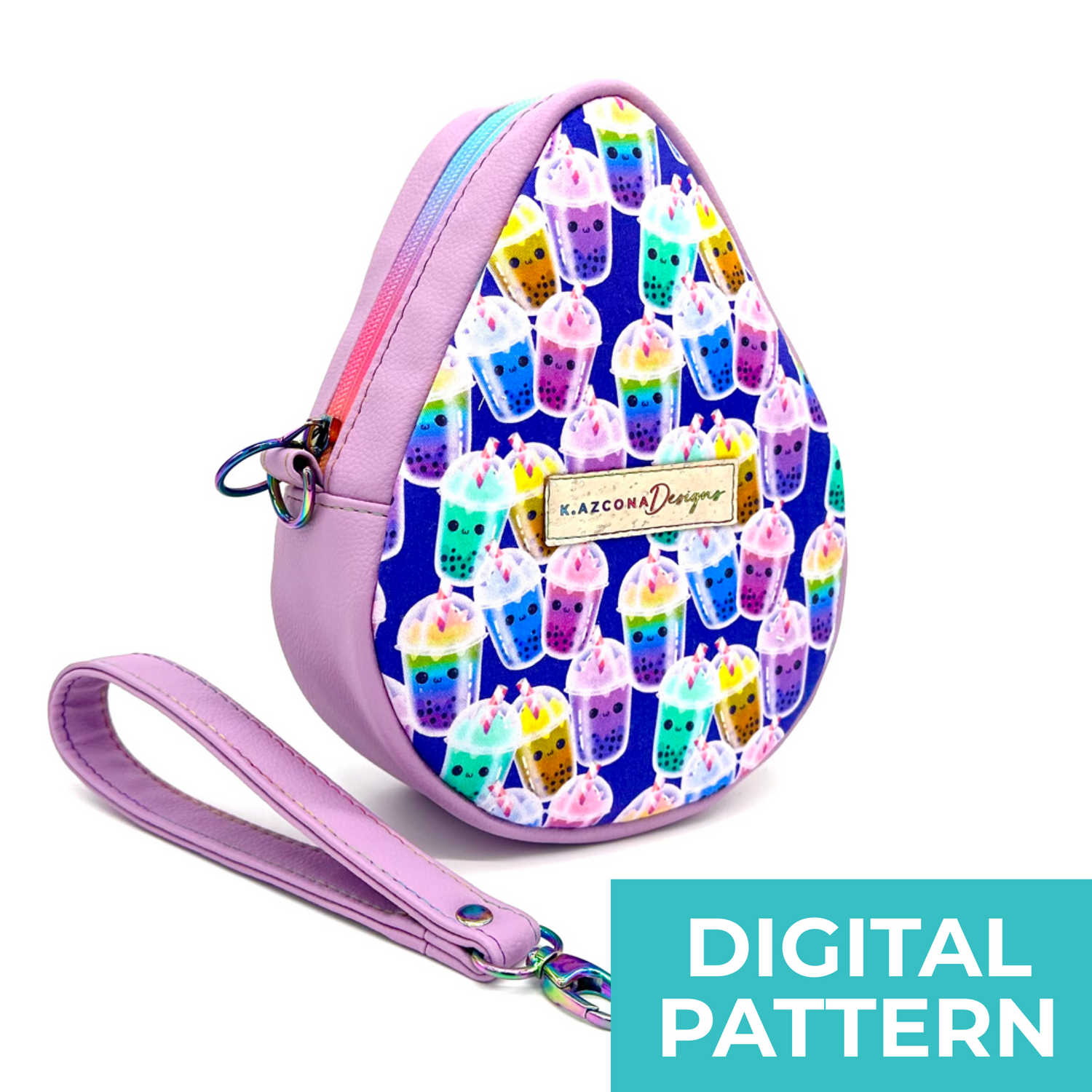 A sleek, water-drop shaped pattern series featuring bags and accessories with a...
