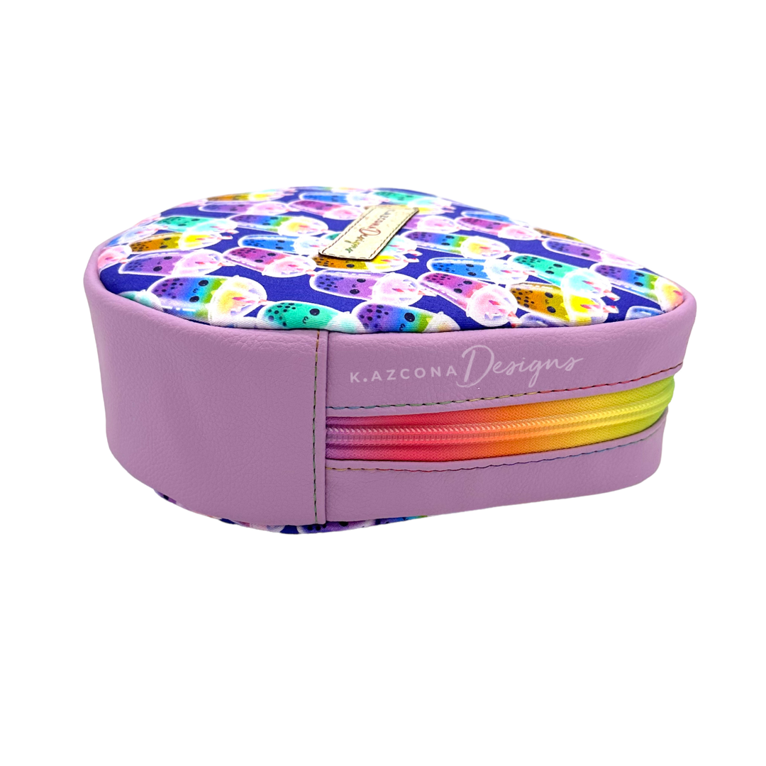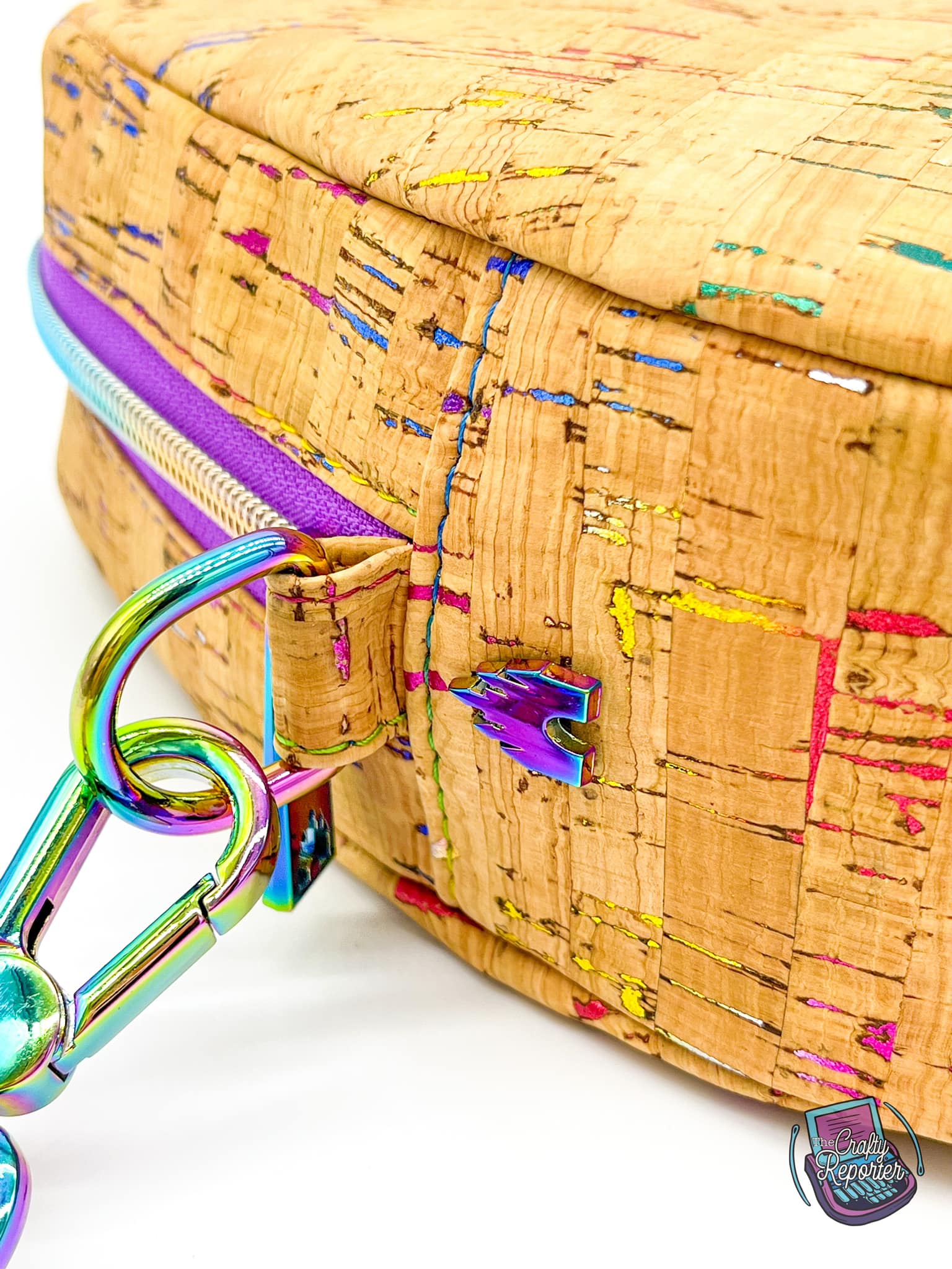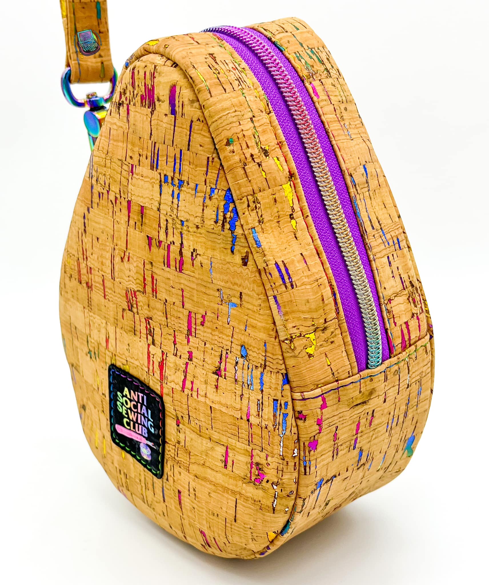 FABRIC REQUIREMENTS: This pattern is perfect for cotton woven, canvas, vinyl, PVC or TPU vinyl, or cork. You'll also need woven interfacing if using cotton woven and your favorite stabilizer. This is a bound bag that requires either bias tape, strips of waterproof canvas, or fold over elastic to bind the seams.